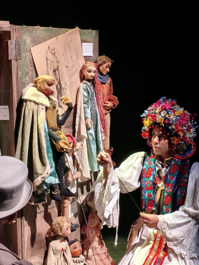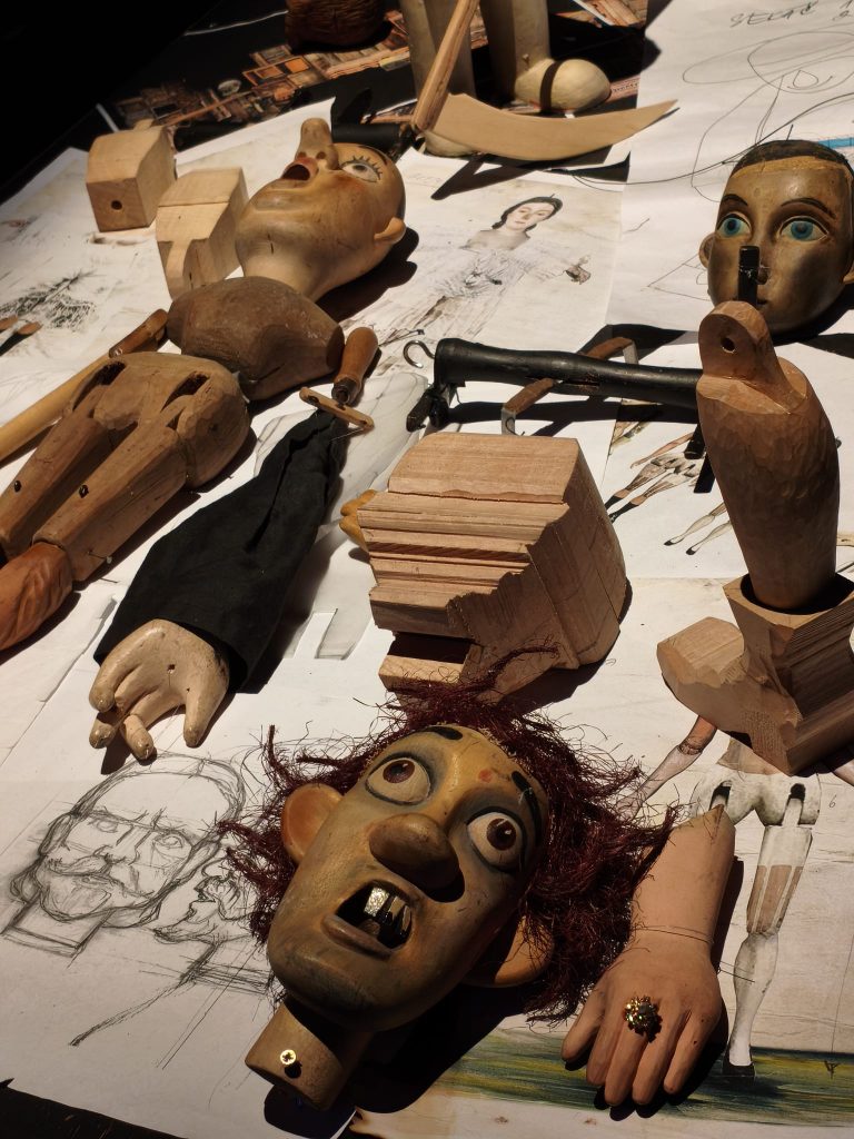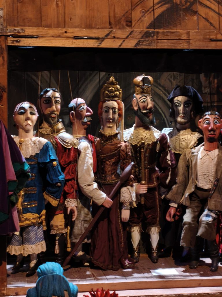 Nous avons pu voir comment les marionnettes sont sculptées dans le bois du tilleul et même nous essayer à la manipulation de marionnettes !
