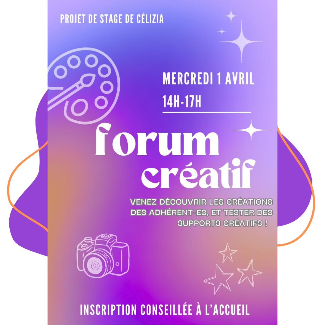 Forum créatif, venez découvrir les créations d’adhérent-es des Longs Prés, et découvrir des outils créatifs ! (Peinture, photo, temari, origami, peinture sur porcelaine). Ce forum créatif est mis en place dans le cadre du projet de stage en BUT Carrières Sociales de Célizia.