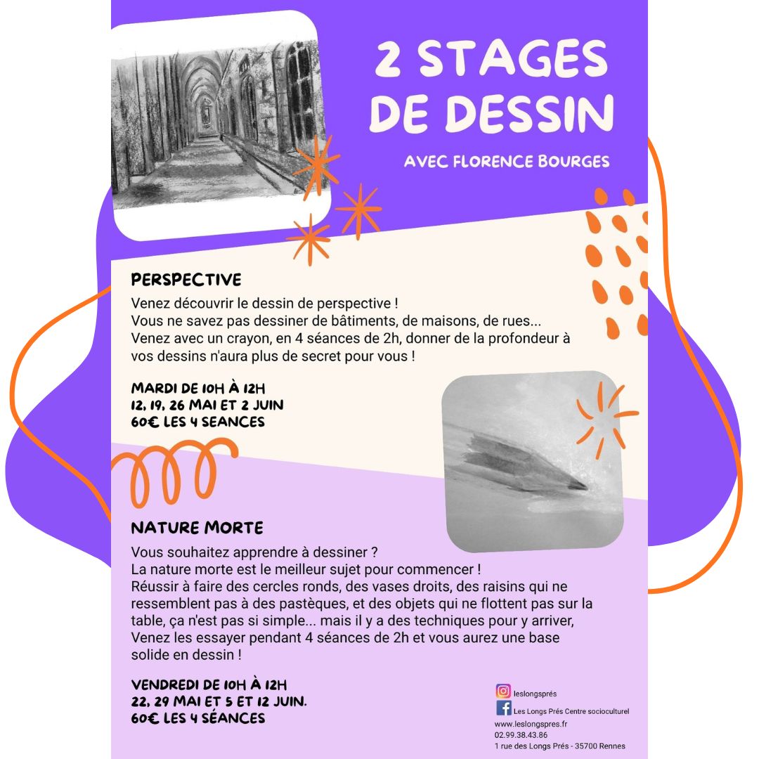 Florence BOURGES, vous propose 2 stages de dessin pour cette fin de saison, 2 thèmes différents.