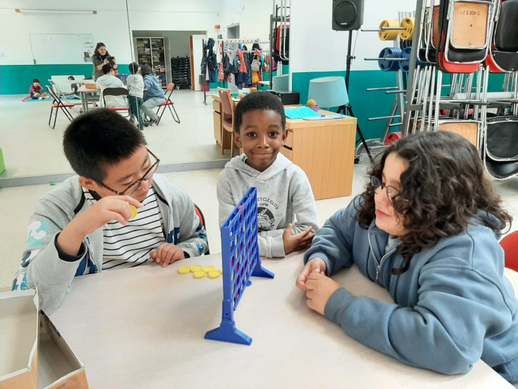 Temps calme entre jeux de société et la tour la plus haute en kapla.