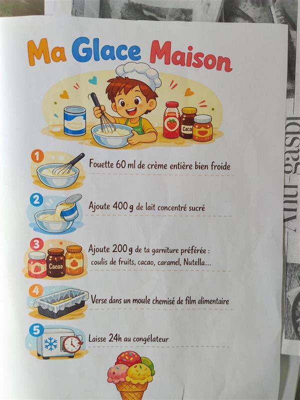Ps: Voici la recette de la crème glacée, que nous avons faite, elle est délicieuse. ![]()